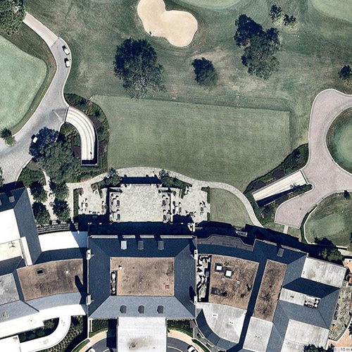 Satellite view of the new putting green, event lawn, tunnel locations, pro shop + grill, and back patio areas.