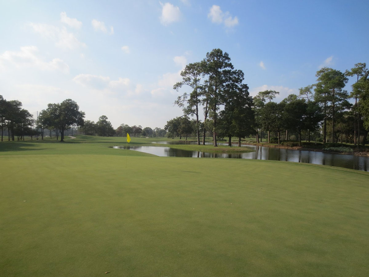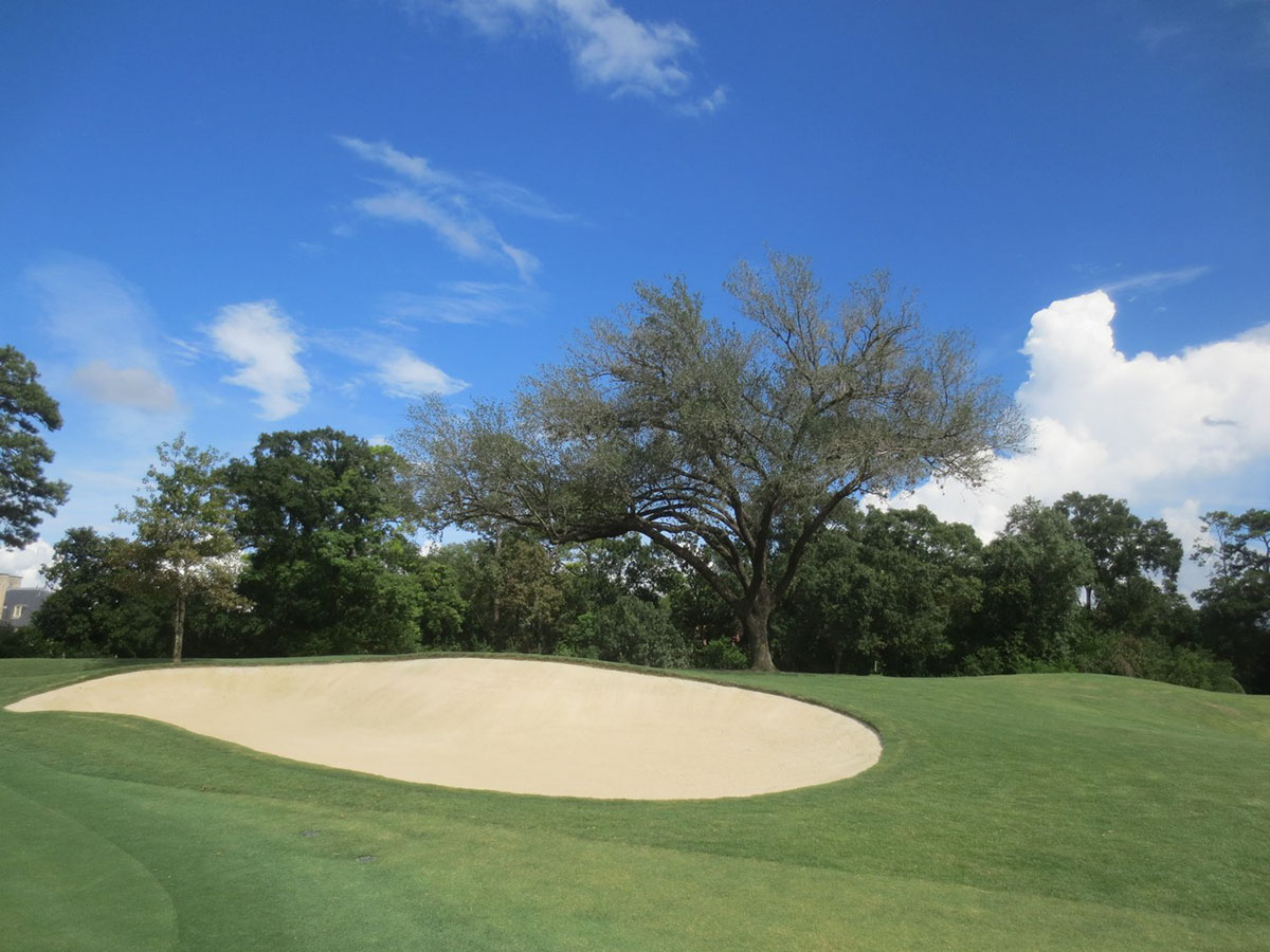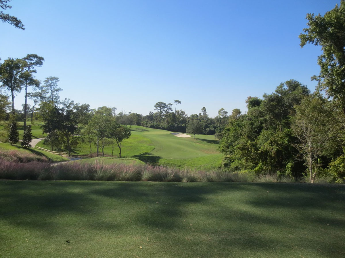 The new par three 14th is near Buffalo Bayou, but high above the banks.