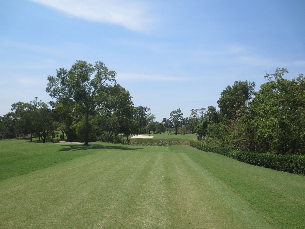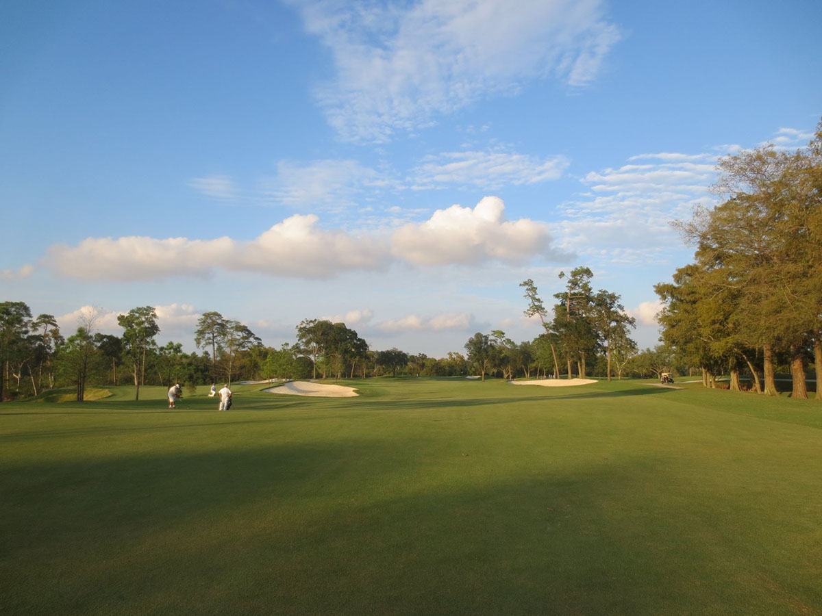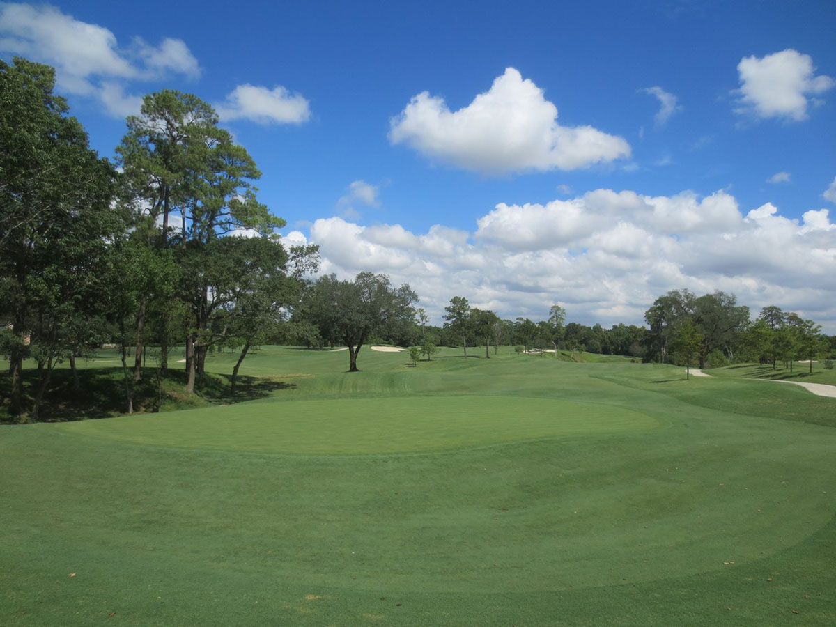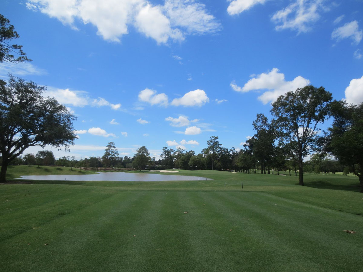The new par three 14th is near Buffalo Bayou, but high above the banks.