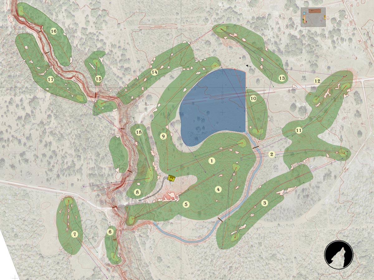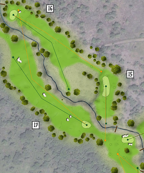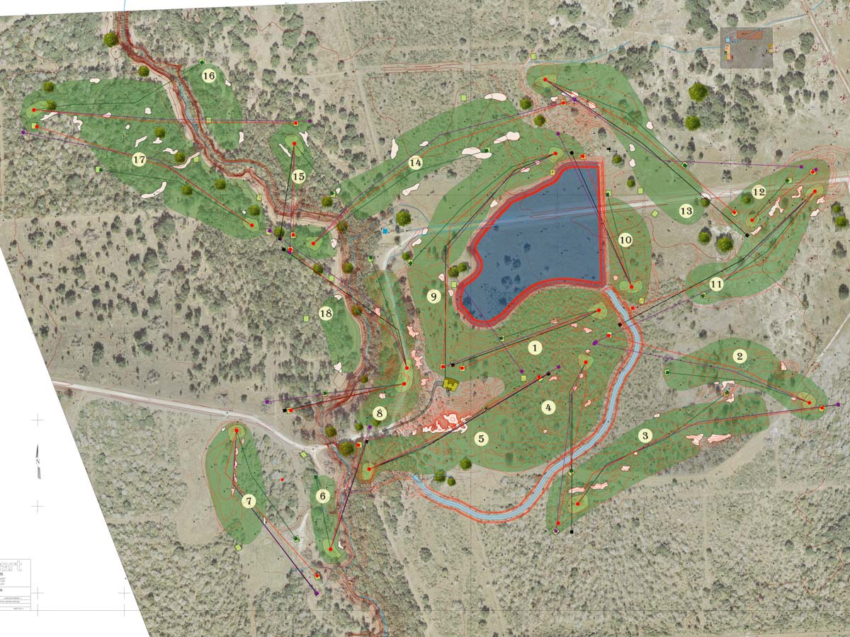 Routing #9b started to explore some of the land Al asked us to shy away from. Holes 15-17 orient clockwise.