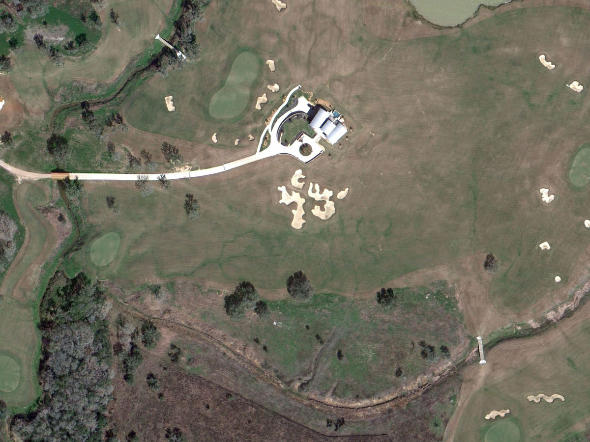 Private golf courses like this are notoriously short-lived, because it's one thing to spend the money to build a course, and another thing to maintain it year after year as the only dues-paying member. To address this, the entire course is mowed at the same height apart from the greens, and most of the 61 bunkers are quite small and easy to take care of. The designer' one extravagance was to build a set of large, undulating greens to provide a lot of day-to-day variety in the setup for a client who plays nearly every day ... but they were also ready to convert some portions of those greens back to fairway if Al didn't value that variety. Fortunately, he has, as there is some responsibility in being the owner of the best set of greens in Texas."