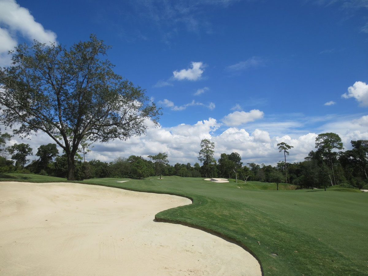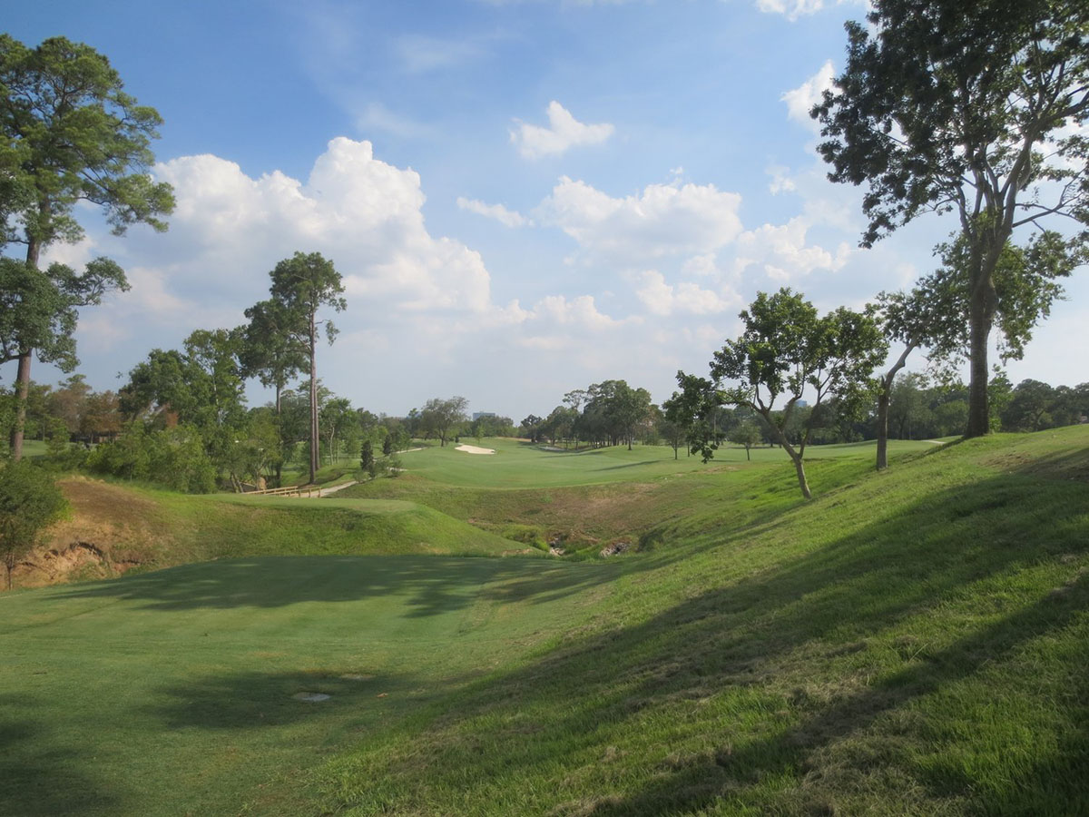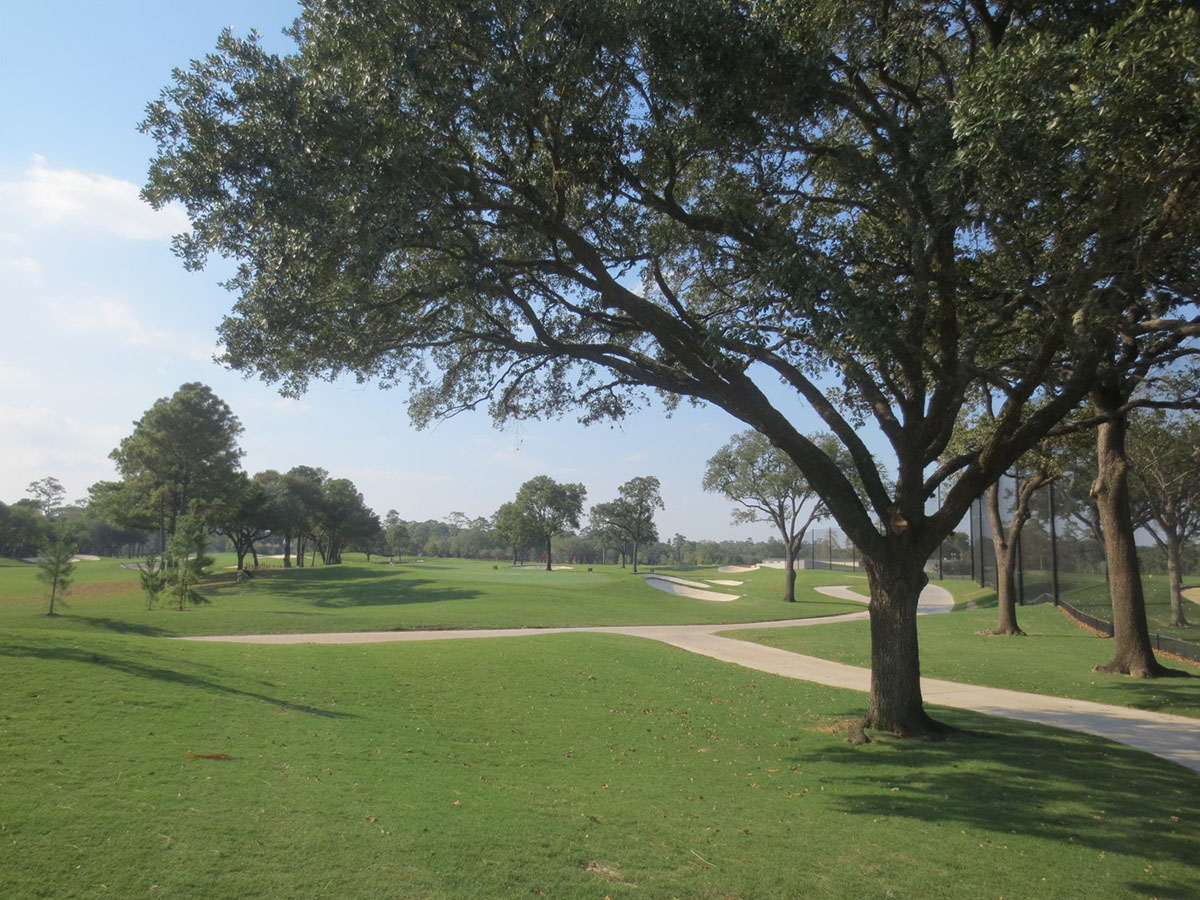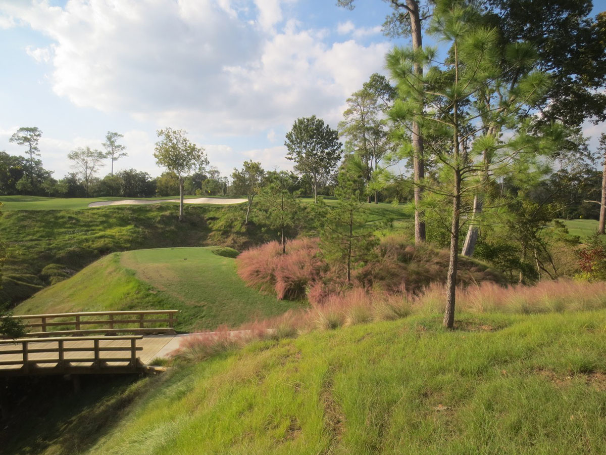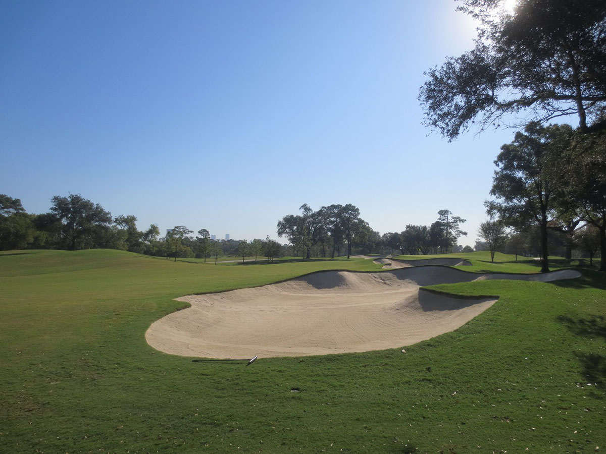 The new par three 14th is near Buffalo Bayou, but high above the banks.