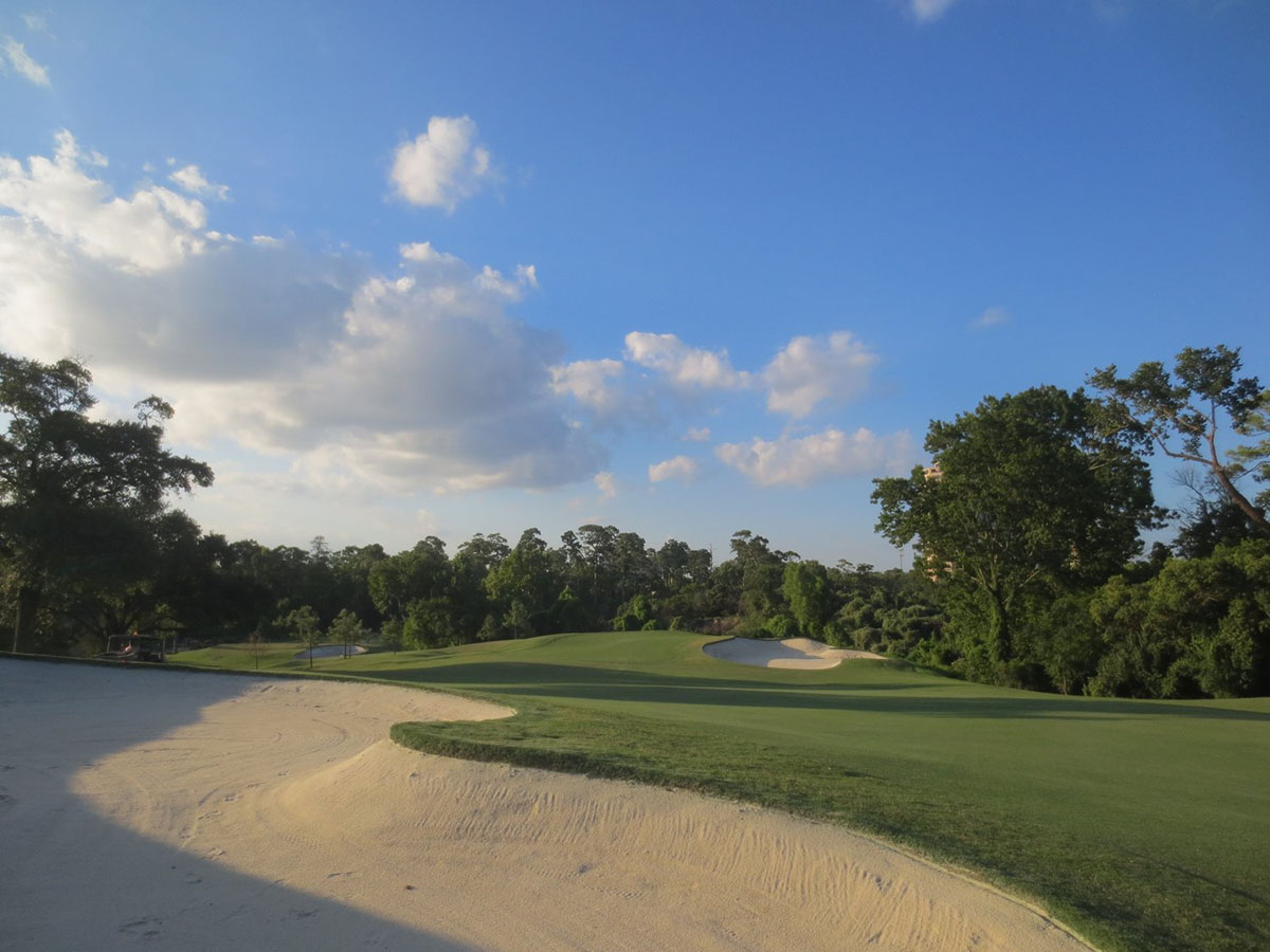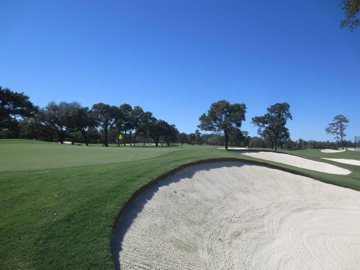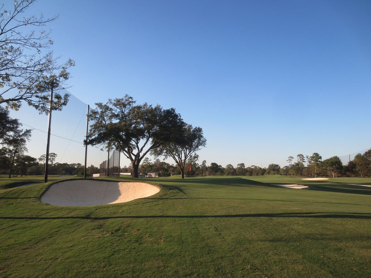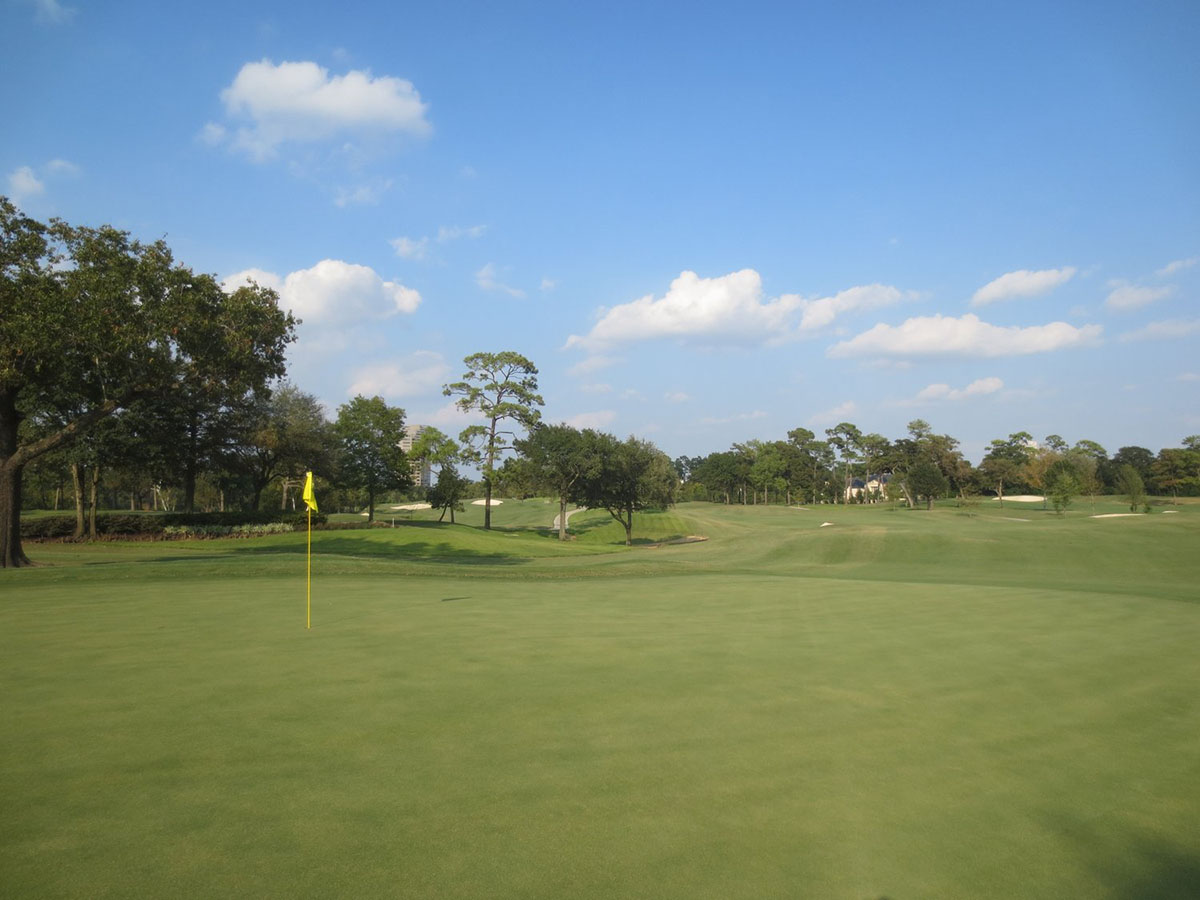 The new par three 14th is near Buffalo Bayou, but high above the banks.