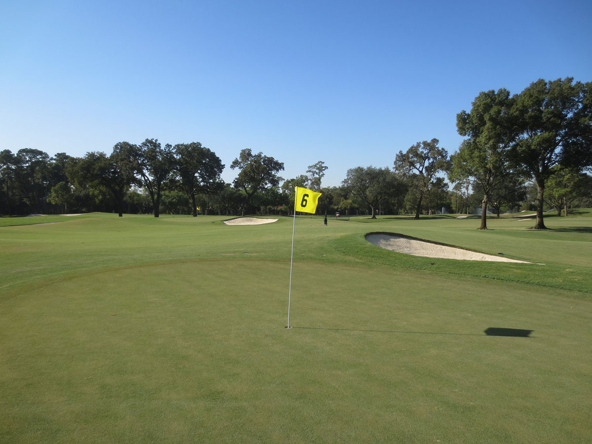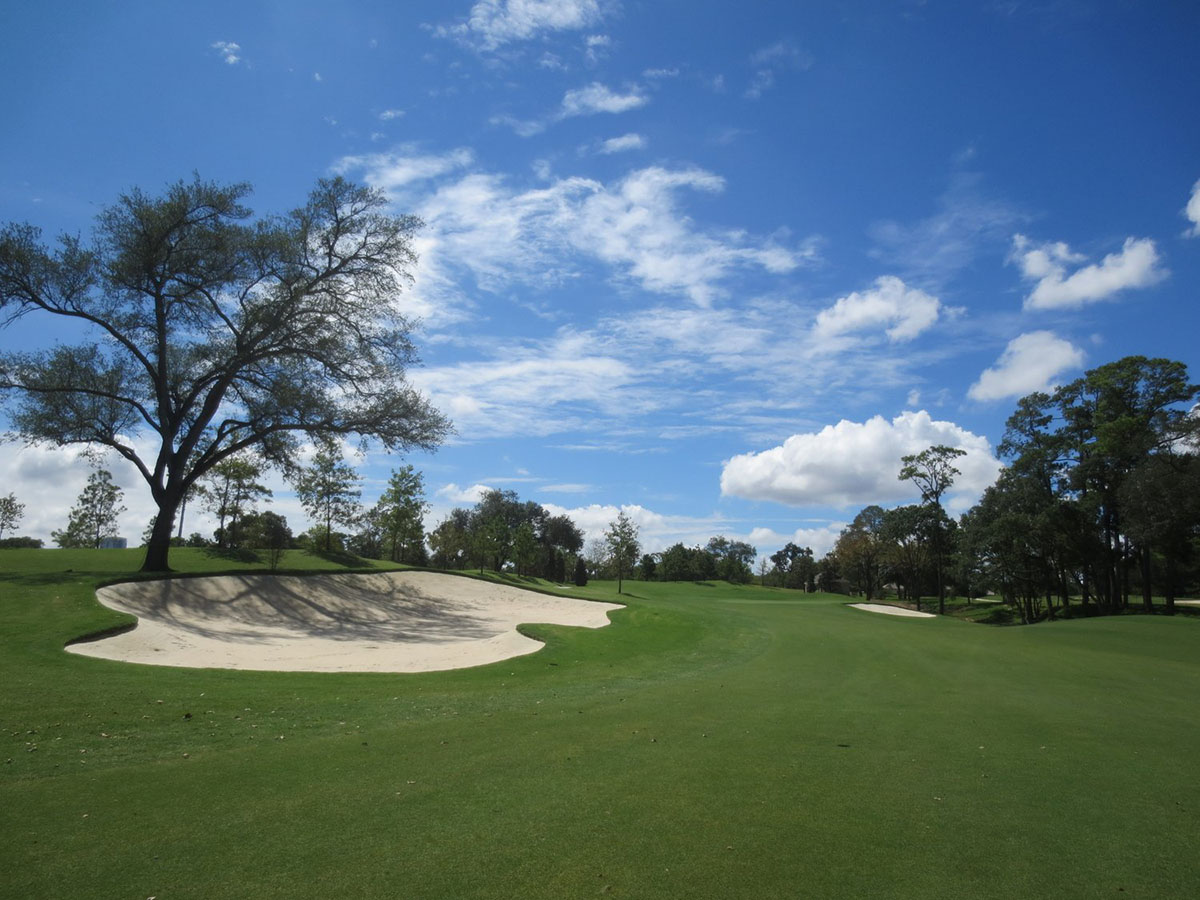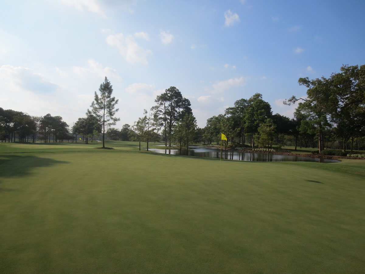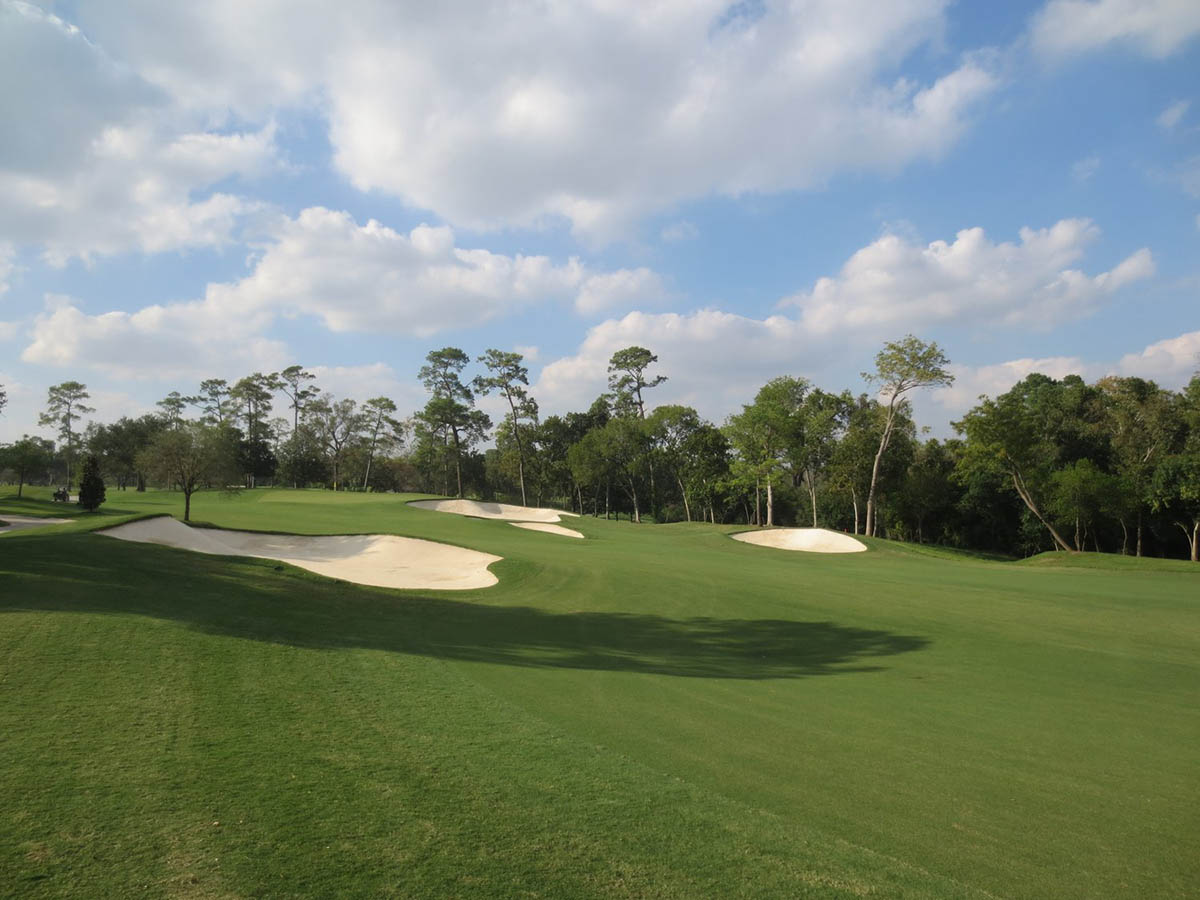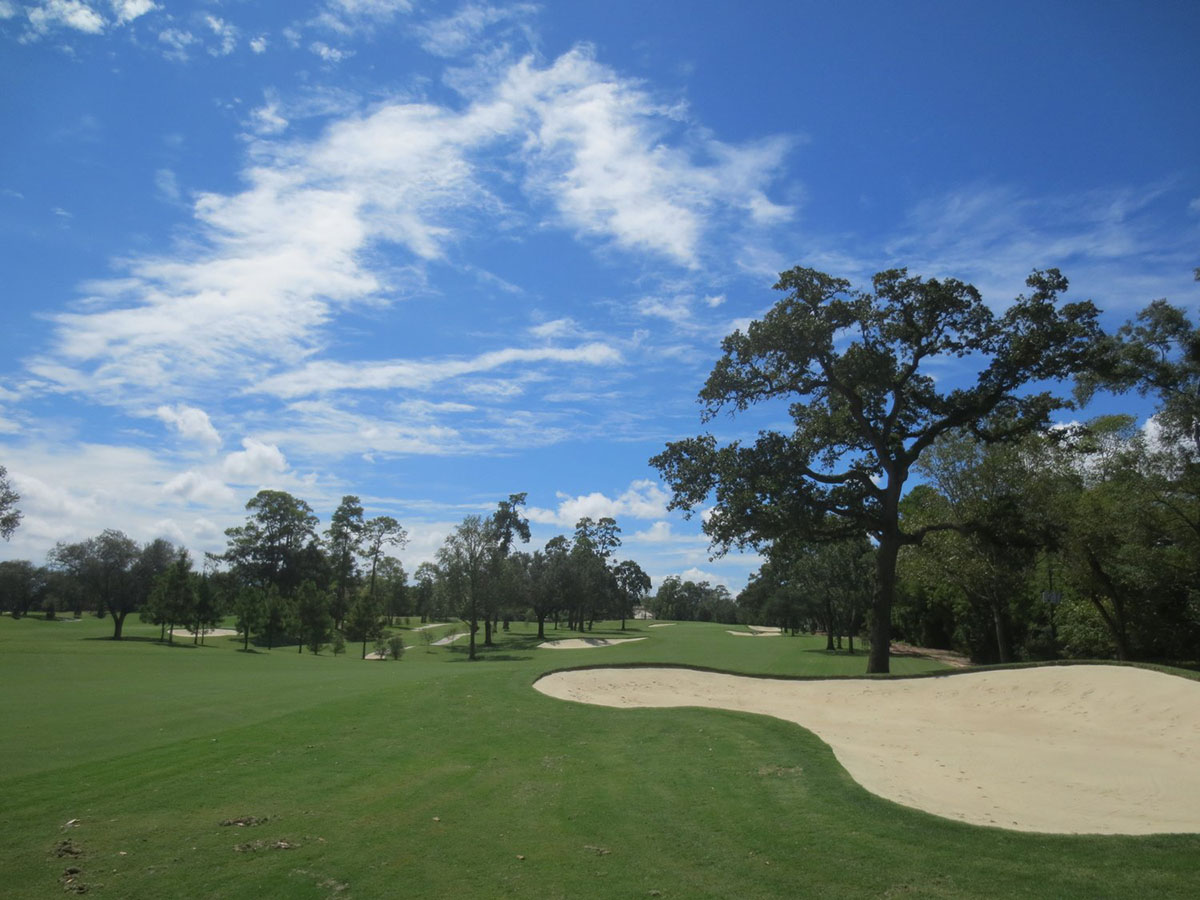 The new par three 14th is near Buffalo Bayou, but high above the banks.