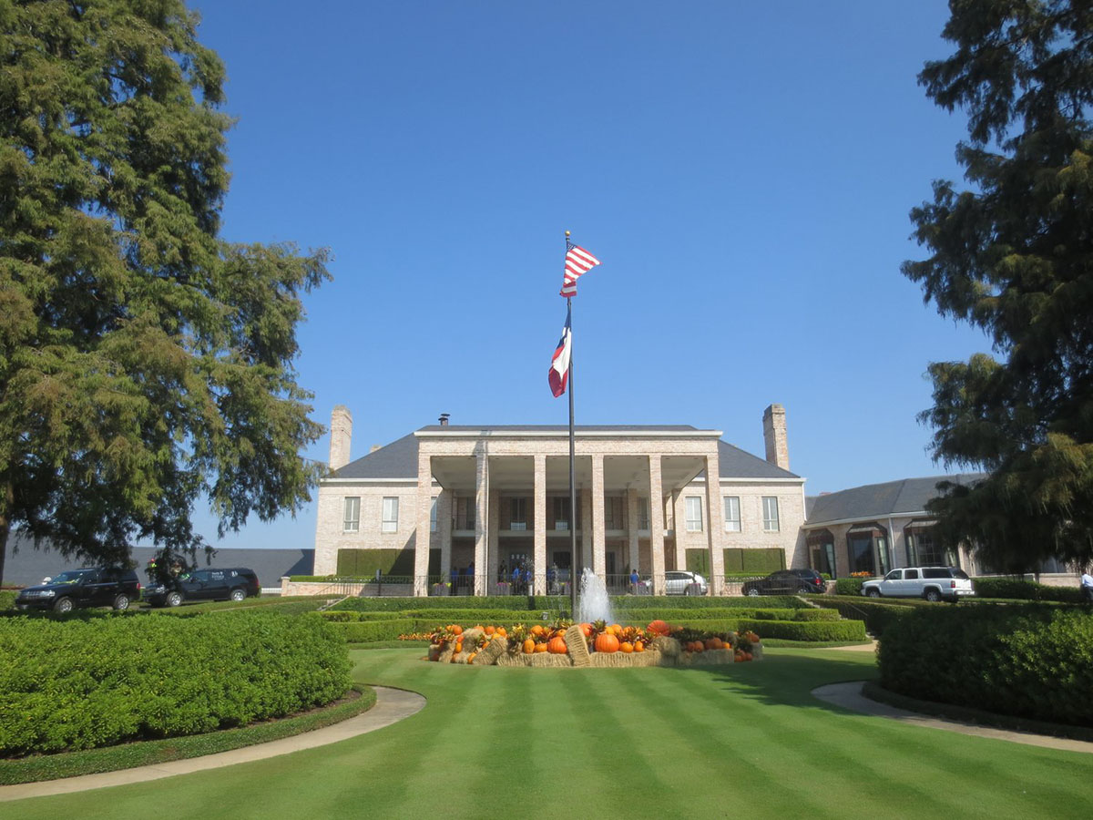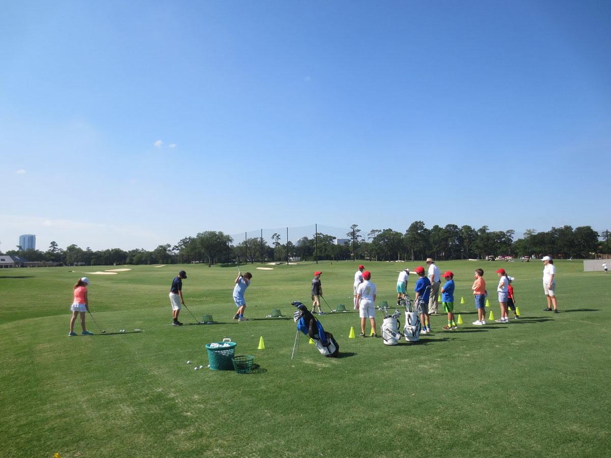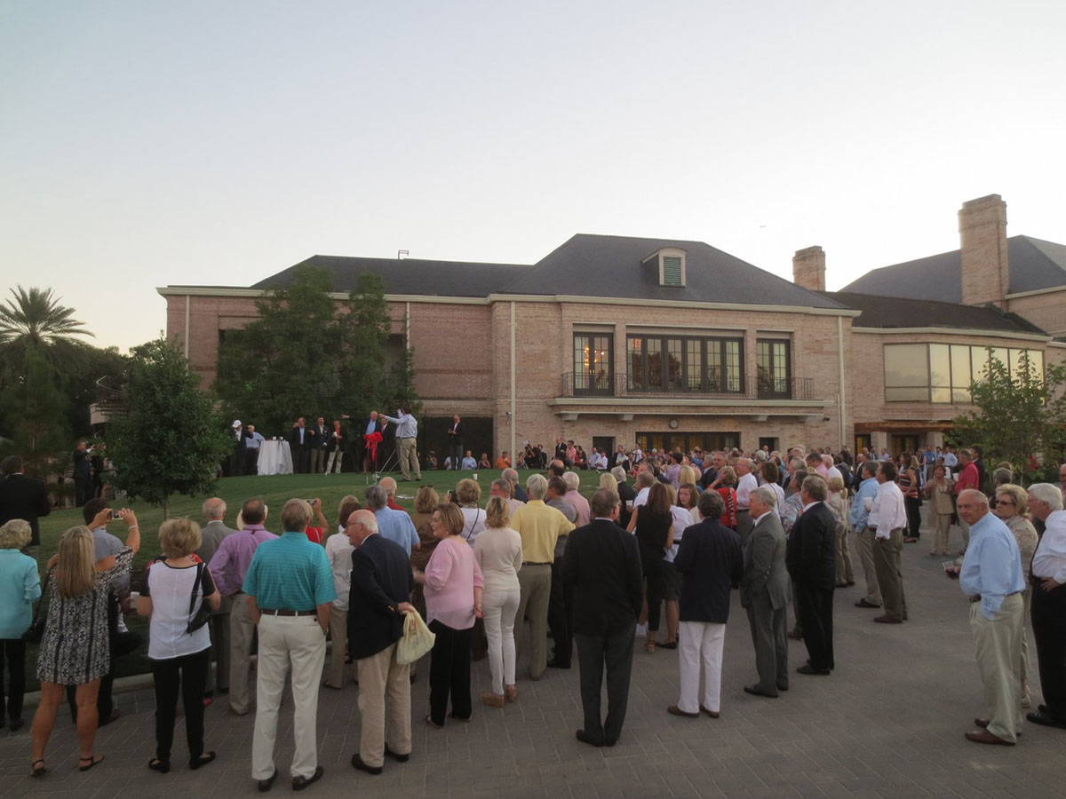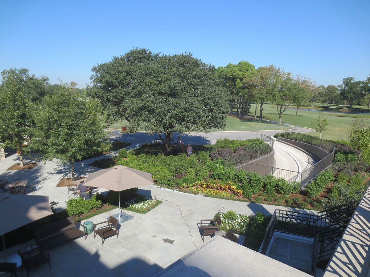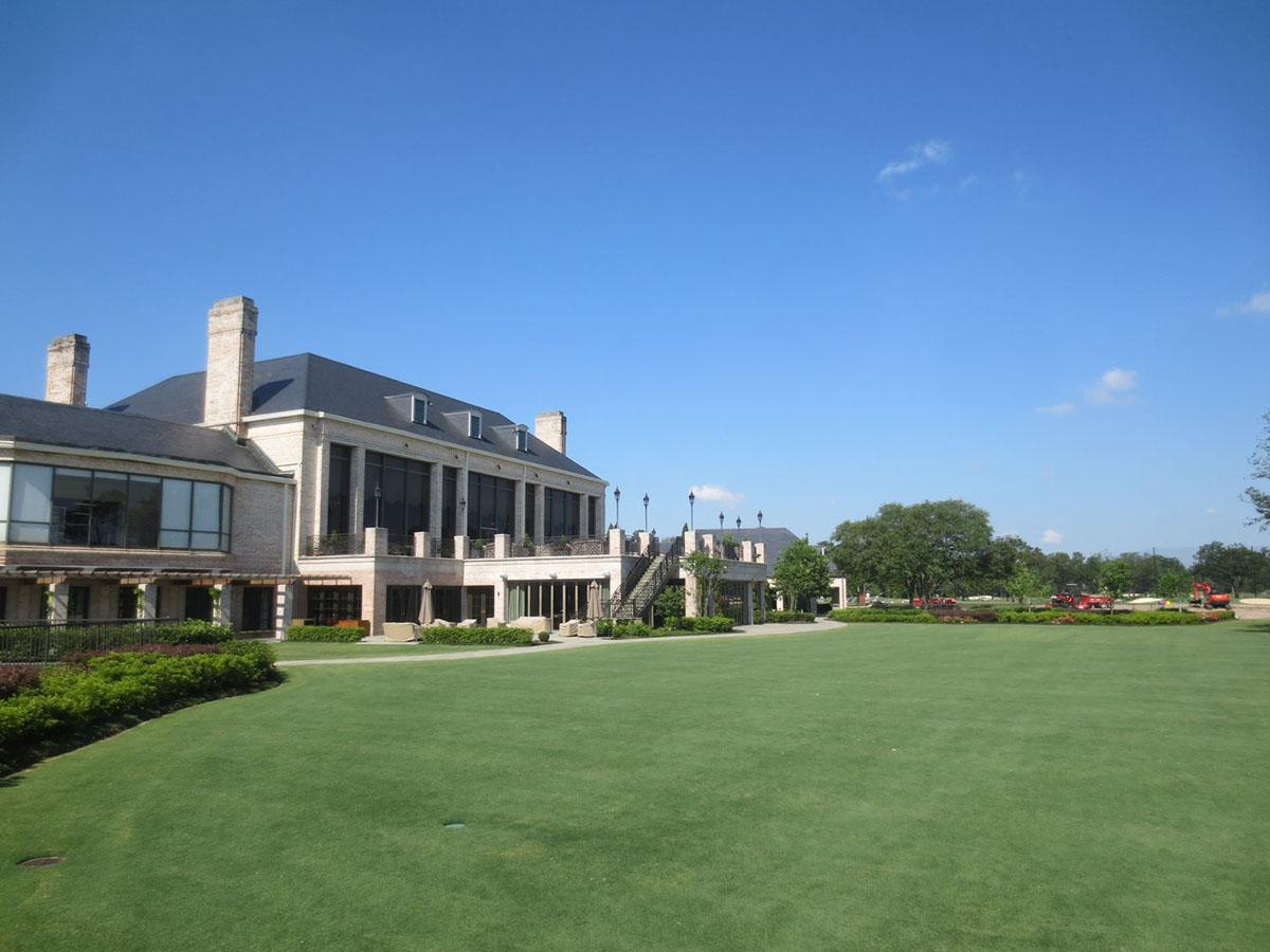 The John F. Staub designed clubhouse sits at the end of River Oaks Blvd.