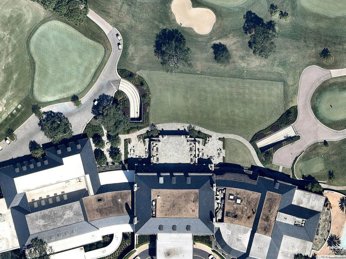 Satellite view of the new putting green, event lawn, tunnel locations, pro shop + grill, and back patio areas.