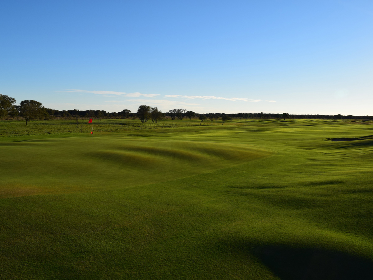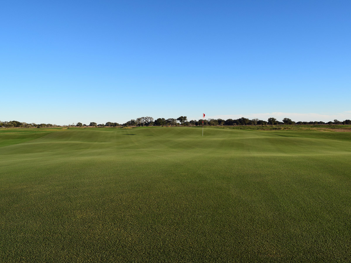 Private golf courses like this are notoriously short-lived, because it's one thing to spend the money to build a course, and another thing to maintain it year after year as the only dues-paying member. To address this, the entire course is mowed at the same height apart from the greens, and most of the 61 bunkers are quite small and easy to take care of. The designer' one extravagance was to build a set of large, undulating greens to provide a lot of day-to-day variety in the setup for a client who plays nearly every day ... but they were also ready to convert some portions of those greens back to fairway if Al didn't value that variety. Fortunately, he has, as there is some responsibility in being the owner of the best set of greens in Texas."